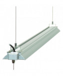 This light kit provides direct overhead lighting to brighten any work surface where additional lighting is needed. The light fixture hangs from cantilever brackets (included) using adjustable cord plungers. Associated accessory-mounting uprights and upright kits are available with and without height-adjustable cantilever brackets (all sold separately). The light unit is height adjustable while on brackets using depressor plungers. The reflector and base are constructed of aluminum. The cover is made of clear thermoplastic and helps protect lamps from damage. Includes two 35 W 50,000 hr, non-replaceable led lights. Units are 120 V. Upright kit required.