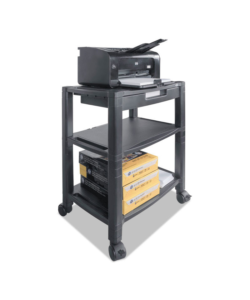 Height-Adjustable Deskside Printer Cart, Plastic, 3 Shelves, 1 Drawer, 60 lb Capacity, 20" x 13.25" x 24.5", Black
