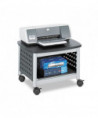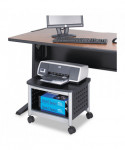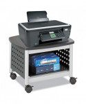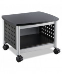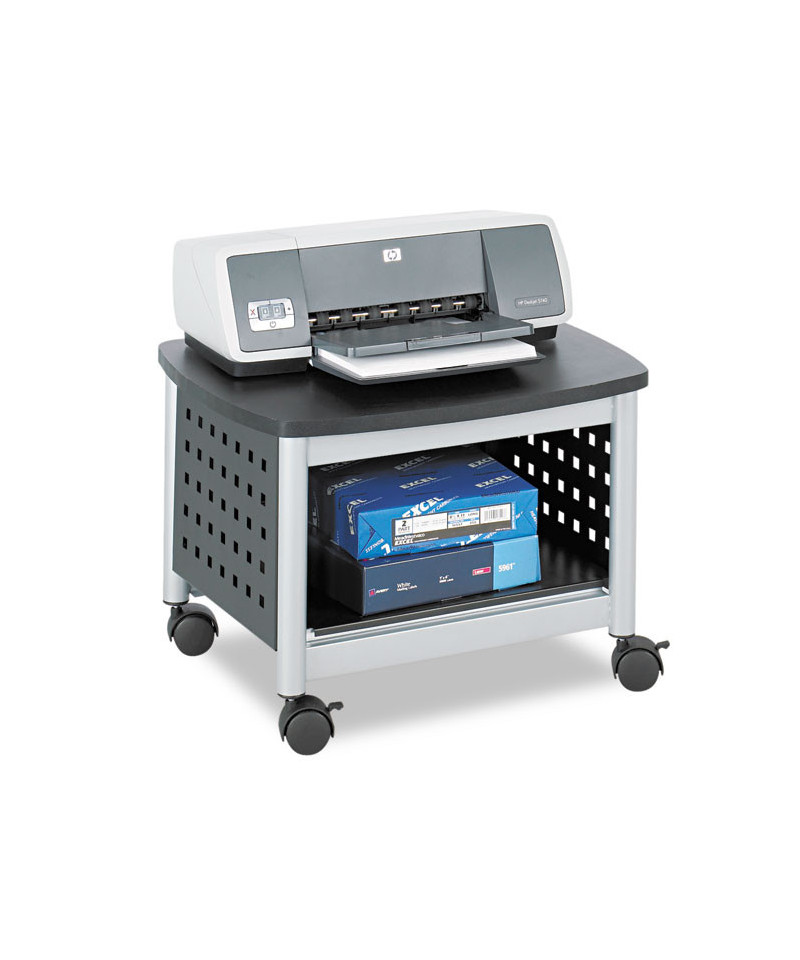 Maximize your workspace with this compact and durable printer stand, designed to save valuable desk space while keeping essential printing supplies within easy reach. Perfectly sized to accommodate most desktop printers and small office machines, this stand provides a sturdy and stylish solution for organizing your office. The rugged steel construction features a unique hole pattern design, ensuring both strength and ventilation for your devices. A sleek black laminate top adds a modern touch, while the black powder coat finish enhances durability and resistance to wear. Designed for effortless mobility, the stand glides smoothly on four easy-roll casters, with two locking wheels for secure positioning. Whether used in a home office, corporate setting or shared workspace, this versatile and space-saving printer stand offers the perfect blend of functionality, durability, and style to enhance productivity. Upgrade your workspace today!