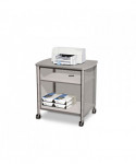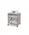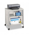 Safco Adjustable Printer Stand blends strength with classic styling to create a printer cart that works as hard as you do. Durable, PVC side panels hide computer cables and cords while the commercial-strength steel framework and adjustable laminate shelves hold essential office equipment and supplies. The sturdy frame contains a powder coat finish to help resist chipping and scratching while the four swivel wheels allow smooth rolling from room to room, even on carpeting. This versatile cart performs effectively in your office, home office, classroom, training center, library, media center, mail room, classroom and conference room.