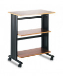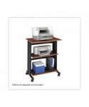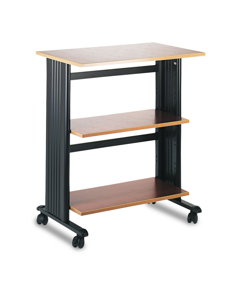 Safco Muv adjustable printer stand blends strength with classic styling to create a printer cart that works as hard as you do. Durable, PVC side panels hide computer cables and cords while the commercial-strength steel framework and adjustable laminate shelves hold essential office equipment and supplies. The sturdy frame contains a powder coat finish to help resist chipping and scratching while the four swivel wheels allow smooth rolling from room to room, even on carpeting. This versatile cart performs effectively in your office, home office, classroom, training center, library, media center, mail room, classroom and conference room.