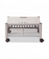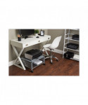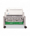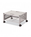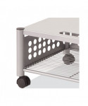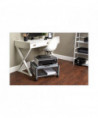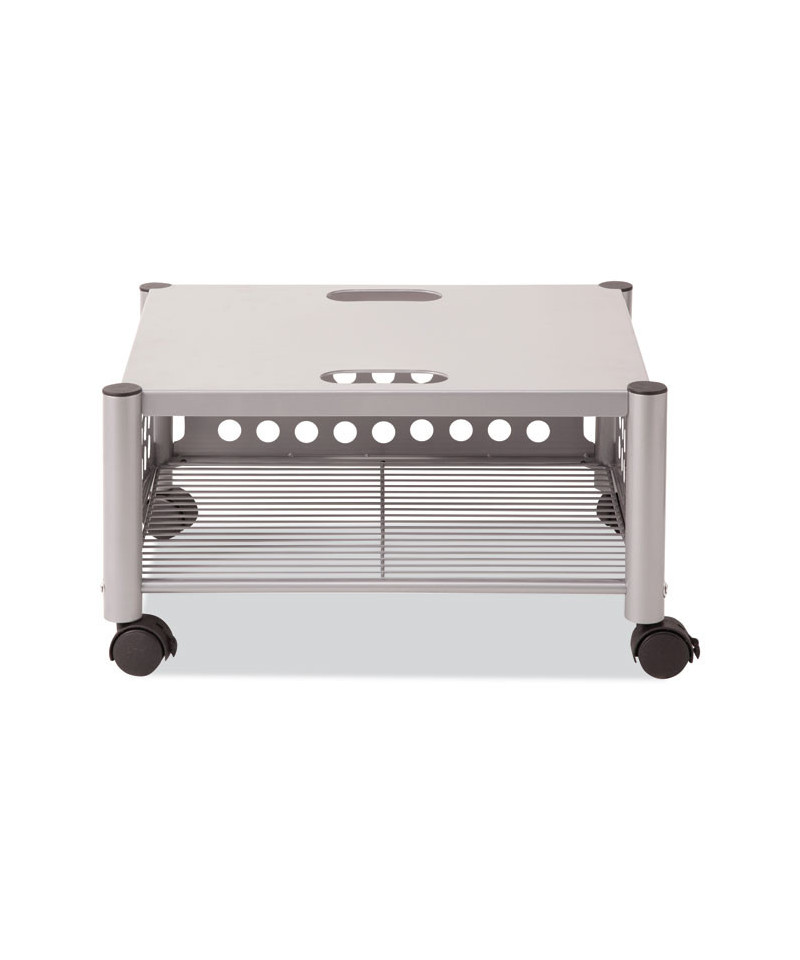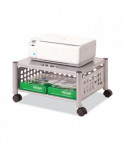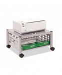 Great for office use or at home to support office appliances. Versatile machine stands are ideal for printers, fax machines, and personal copiers. Durable steel and wire construction. Four, two-wheel casters; two locking. Easy to assemble, transport, and consolidate after use. Features two convenient openings to route cords/cables and to use as a handle to pull from beneath worksurface.