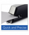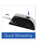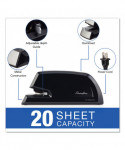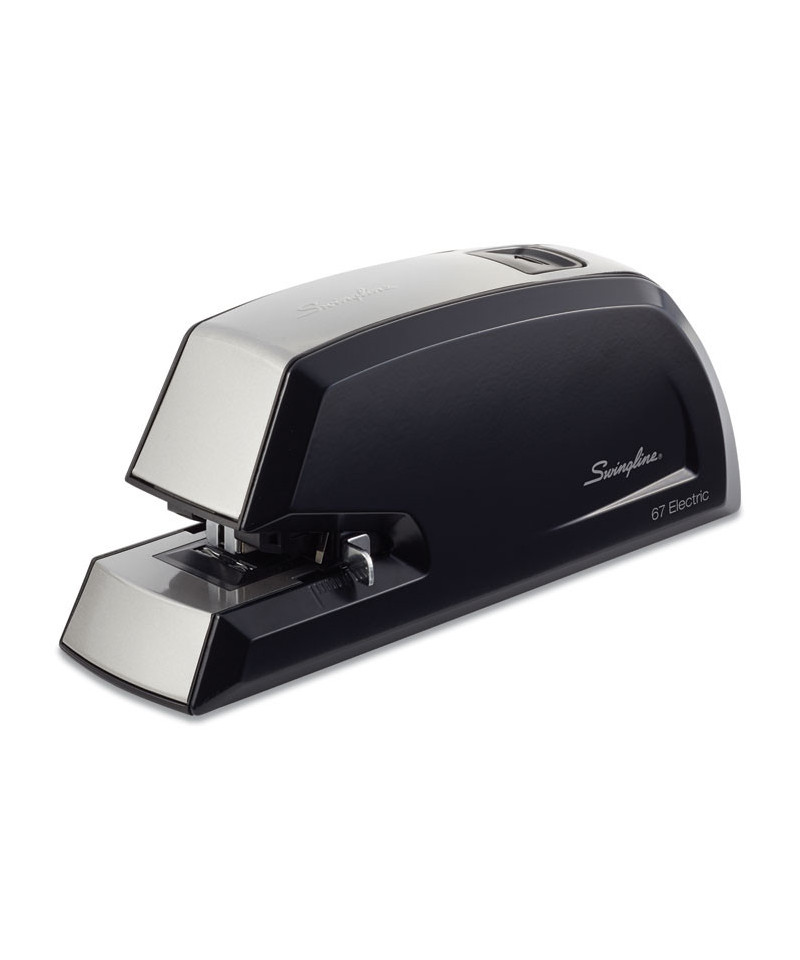 This sturdy electric stapler stands up to frequent use. You can depend on the high quality and durability of this stapler for reliable stapling performance each and every day. Designed for everyday use, this durable metal Swingline Commercial Electric Stapler provides long-lasting performance. Staples up to 20 sheets at a time. For best results, use Swingline S.F. 4 staples. Great for busy offices, this electric stapler is will get stapling jobs completed more quickly and efficiently. Easy front-loading QuickLoadsystem ejects the staple magazine with the push of a button for faster staple refills. Includes an adjustable paper depth guide so it's easy to choose how far the staple is positioned from the edge of the paper. Flat clinch tightly flattens the staple reducing papers from curling up at the edges to form neater paper stacks. An indicator light illuminates red to conveniently let you know when there are no staples in the magazine or if they are low. The light flashes red when the magazine is still ejected. Rubber feet on the bottom of the stapler provide durable traction. 100% Performance Guarantee.