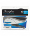 Control stapling better with this specialty hand stapler. Soft materials increase user comfort and the top-loading design makes staples easy to insert. Holds a full strip of Swingline S.F.® 4® Premium Staples and offers extremely easy stapling up to its full sheet capacity. Integrated safety loop for security cables (cable sold separately) makes the stapler ideal for countertop and common areas. Metal construction ensures lasting durability.
