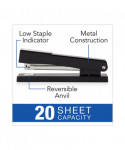 Traditional no-frills desktop stapler meets your regular stapling needs. Metal construction guarantees reliable performance. The classic design of this stapler makes both desktop and handheld stapling comfortable. Full rubber slipper on stapler base prevents skidding on any surface. Staples, tacks and pins-pull open to post items to tackable surfaces and reverse the anvil to instantly create a temporary pin staple.