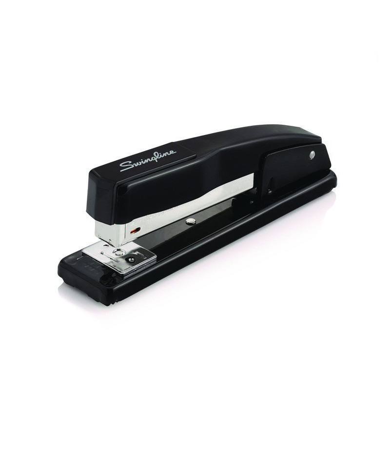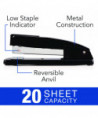 Turn to the Commercial Desk Stapler when you need durable, long-lasting stapling integrity. Metal construction and a 20 sheet stapling capacity makes this stapler a great candidate for heavy, daily use. Positive locking latch is included to hold staples securely in magazine. Provides both tacking and pinning functionality. The stapler opens flat for tacking to a vertical surface and has an anvil that rotates to create a temporary pin staple.
