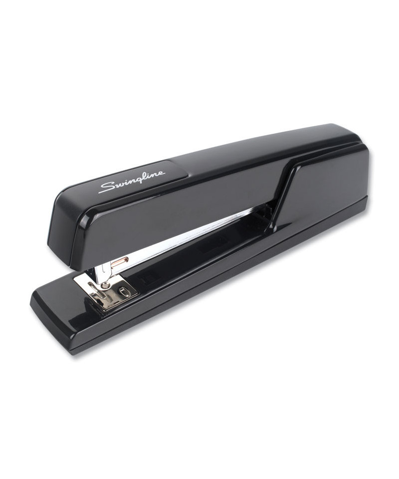 One of America's top-selling manual desktop staplers: simple, accurate, reliable and strong. Metal construction, inner rail and positive locking latch make this stapler especially durable, while minimizing jamming and ensuring that staples are aligned. The 747 staples opens flat, allowing you to post papers instantly to a bulletin board or similar tackable surface. Reversible anvil enables pinning: by turning the anvil you can create a pin staple with legs that point out so it can be removed without a staple remover, without tearing posted materials. Backed by a 100% Performance Guarantee when used with Swingline S.F.® 4® Premium Staples.