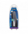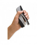 Ergonomically designed specifically for handheld use-compact size is ideal for smaller hands. Delivers 25% greater capacity than other desk staplers. Jam-free with Optima™ or Swingline® S.F.® 3 Premium staples. Stands vertically or sits horizontally. Metal with soft-feel material. 2 1/8" throat depth. Loads a half strip (105) of 1/4" standard staples.