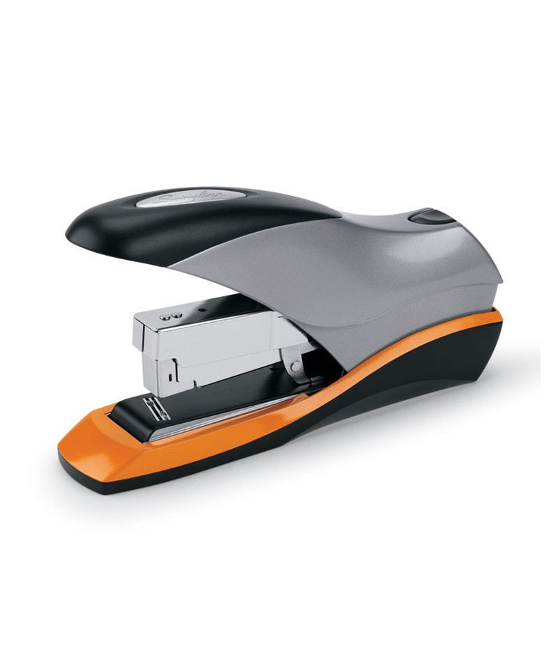 The Optima® desktop stapler features a reduced-effort design, 50% easier when compared to standard desktop staplers, and its ergonomic shape and soft-feel handle simply makes stapling more comfortable. As desktop staplers go, the Optima® stands out front the crowd, stapling up to twice as many sheets as most comparable models. They also accommodate flat-clinch stapling, where the staple is formed flat on the reverse of the bottom-most sheet, to allow for neater stacking. QuickLoad functionality simplifies staple loading, too-just push a button and the staple magazine pops out from the front, enabling easy reloading. Backed by the Swingline® 100% Performance Guarantee.