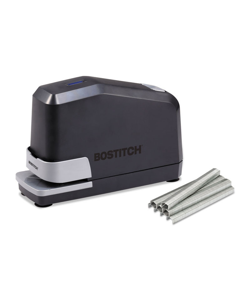 The B8® Impulse 45™ Electric Stapler is the ultimate supply for those who expect nothing but the best. It offers a unique blend of superior performance and sophisticated design, suitable for any office. If you have a high volume of stapling work and limited time, then you will love the Impulse Drive™ technology. It delivers 3x faster stapling speeds, making you work go faster. This heavy-duty electric stapler features a high performance drive system to stapler up to 45 sheets easily and consistently. Our innovative No-Jam™ technology puts an end to frustrating, document damaging staple jams. A refill alert light provides a bright visual indicator when it's time to reload, and a push-button FastLoad™ magazine makes reloading faster. The integrated suction cup feet make for easy mounting and ultimate stability. No longer will your stapler move around during use! Plus, each of these Bostitch electric staplers comes ready for immediate use with 5000 B8® PowerCrown™ 0.25" Premium Staples. These fastens are extra strong and feature a slightly crowned head shape that allows it to slice through 45 sheets of paper without breaking or buckling. If you're looking for a heavy-duty electric stapler with a high sheet capacity, then this is for you!