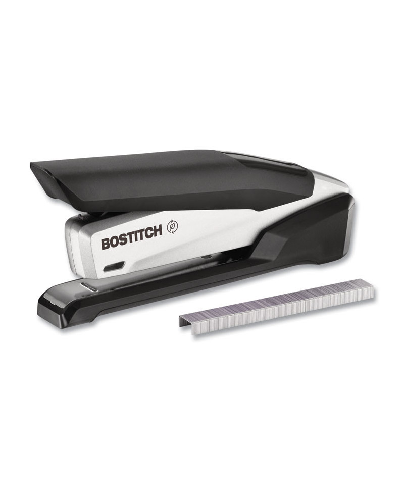 With One-Finger™ Stapling Technology by Bostitch Office, all it takes is a finger to get the job done. Our inPower™ stapler boasts a long-lasting sleek, die-cast metal body that provides the eye candy your desk craves, all while featuring construction made from post-consumer recycled plastic. The easy stapling of up to 28 sheets, along with the ergonomic non-slip comfort grip and base, provide the luxury you deserve. Using standard staples, it also works jam-free and opens for bulletin board tacking. Perfect for home, school or the office – experience a better way to staple while maintaining sustainability choices.