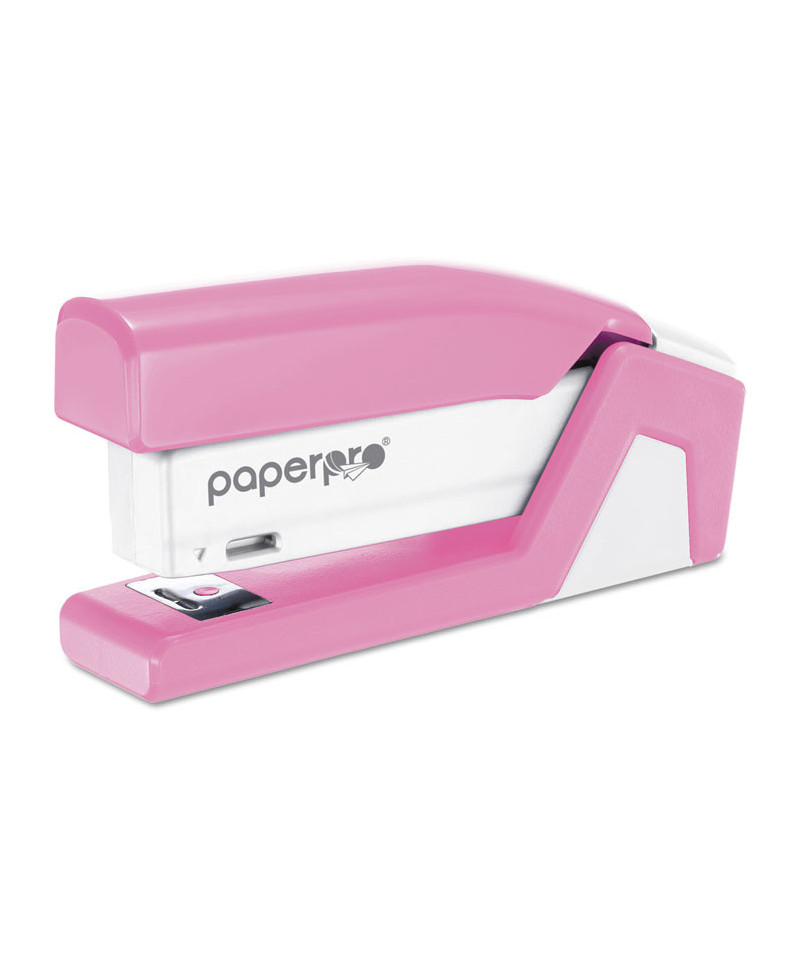 Paperwork can be a hassle, but stapling it shouldn't be. With the InCourage™ Spring-Powered Compact Stapler's One-Finger™ spring-powered technology by PaperPro, experience fast and easy, jam-free stapling when you need it most at school, work or the home office. 80% easier than standard staplers, all it takes is the press of a finger to fasten up to 20 sheets. The lightweight, compact design allows for easier use when held or taken on-the-go in a backpack or travel bag. With a built-in staple puller, staple storage compartment, and an ergonomic, curved design that positions perfectly in the palm of your hand, comfortably staple without missing a sheet. Opens for bulletin board tacking and craft use. Half strip staple capacity; uses standard staples. For optimal performance, use Bostitch Premium Standard Staples (1901). A portion of the proceeds from this purchase is donated to cancer charities via the AMAX Spirit Foundation™.
