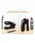 This flat clinch stapler features a half strip design while retaining all the stapling power of a full-sized stapler. It can staple up to 40 sheets of paper at once! Most standard staplers can only handle 20 sheets at a time. This unit also features a convenient flat clinch stapling style. Flat clinch staplers allow documents to lay in flatter, neater stacks. You can keep your papers organized and your desktop clean with the help of this compact stapler. Additionally, each unit opens a full 180° for bulletin board use and features a non-skid, rubber base. Just add your standard staples and you're ready to tackle all the stapling and filing projects ahead.