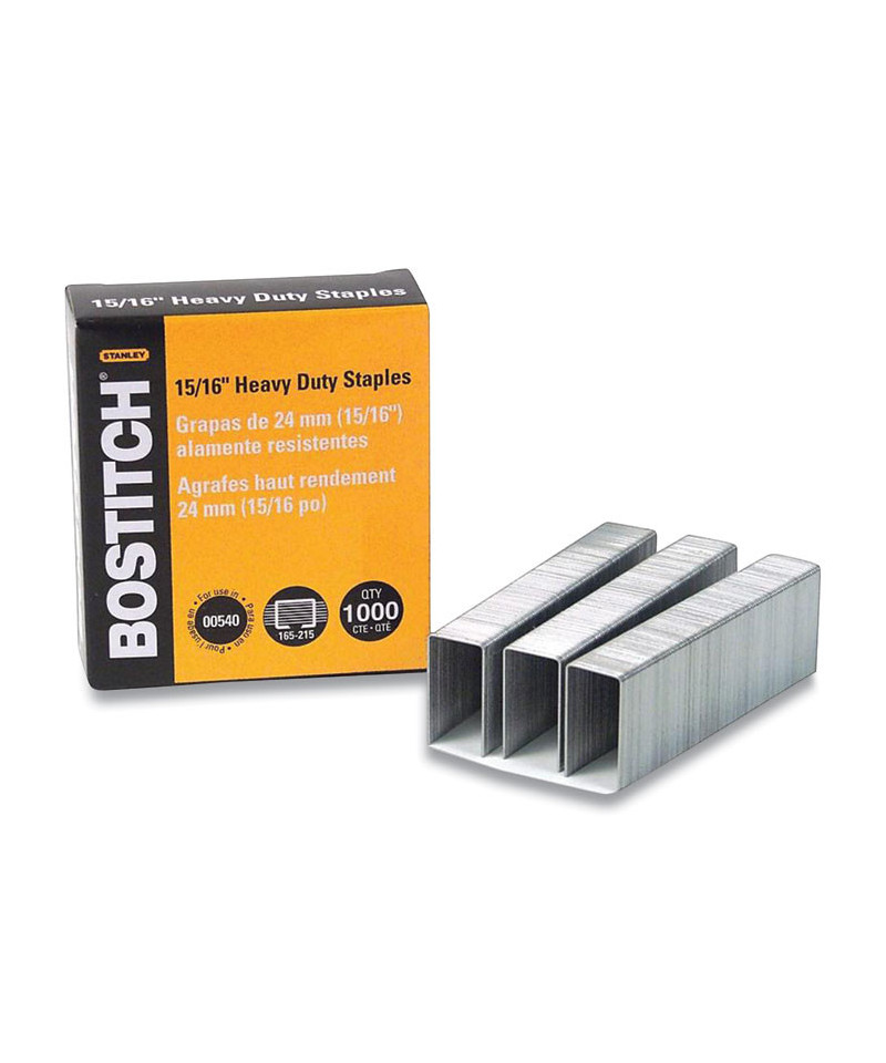 Premium heavy-duty staples are designed to deliver optimal stapling performance. Superior-quality, high carbon steel wire reduces staple buckling and jamming. The finely chiseled points pierce stacks of paper for maximum sheet capacity. Compatible with Bostitch® Heavy-Duty Staplers.