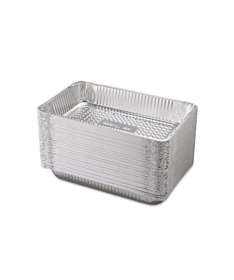 Ridged aluminum foil pan provides superior quality for cooking, freezing and storing. Excellent for catering. Used for hot or cold foods.
