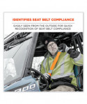 Designed with 3.6 oz ANSI 107-approved fluorescent polyester and 2 reflective for easily identifiable seat belt compliance in trucks or other machinery. This seat belt accessory attaches to standard width seat belts using secure hook and loop closures. This high visibility seat belt cover is ideal for those operating vehicles and other machinery where seat belts are required.