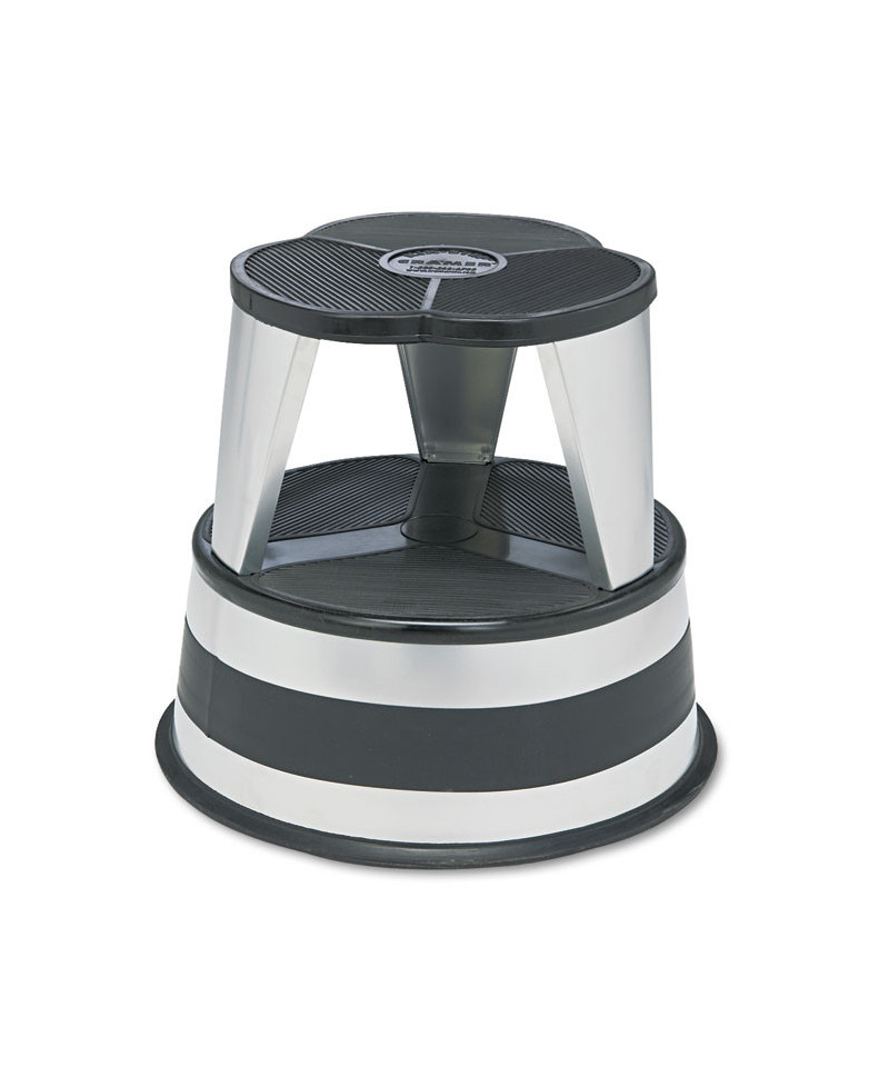 Kik-Step Steel Step Stool, 2-Step, 350 lb Capacity, 16" Diameter x 14.25"h, Silvertone