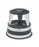 Spring-mounted casters retract when stool is stepped on. Steel construction with nonslip treads. Protective bumper around base. No tools required; simple snap-together assembly.