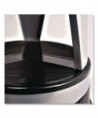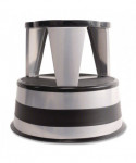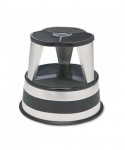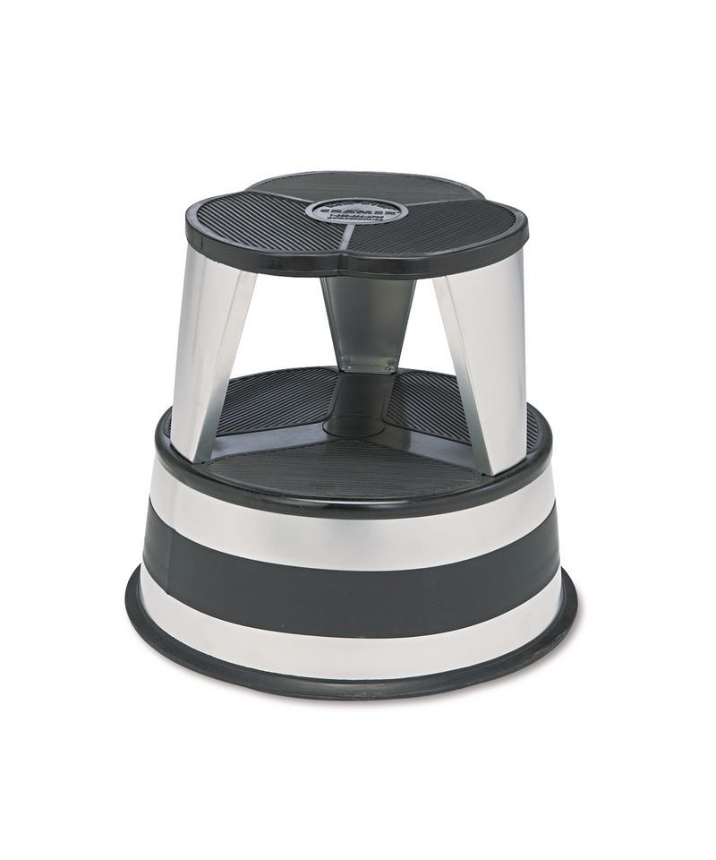 Spring-mounted casters retract when stool is stepped on. Steel construction with nonslip vinyl treads and protective bumper around base. Ships in two pieces and requires no tools for assembly.