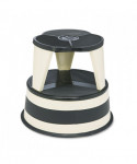 Spring-mounted casters retract when stool is stepped on. Steel construction with nonslip vinyl treads and protective bumper around base. Ships in two pieces and requires no tools for assembly.