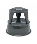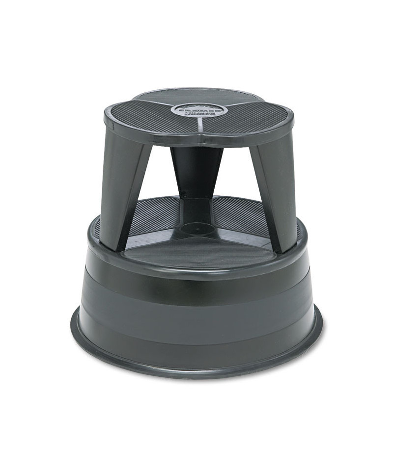 Spring-mounted casters retract when stool is stepped on. Steel construction with nonslip vinyl treads and protective bumper around base. Ships in two pieces and requires no tools for assembly.