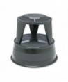Spring-mounted casters retract when stool is stepped on. Steel construction with nonslip treads. Protective bumper around base. No tools required; simple snap-together assembly.