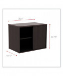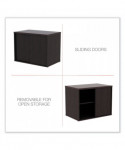 Use this sturdy, low-profile cabinet credenza for in-office storage purposes and pair it with an Alera® Open Office Series, Sedina Series or Valencia Series Desk as a return to create a "J", "L" or "U" configuration. Durable, scratch-, dent- and water-resistant woodgrain laminate finish coordinates perfectly with all three Alera® furniture lines. Easy-slide doors conceal the credenza's contents; but if an open-storage solution is preferred, they're also easily removable. For expanding your office's seating options, the credenza top also coordinates with Alera® Pedestal Seat Cushions (cushions sold separately). To ensure stable placement, the cabinet credenza also features leveling glides to compensate for uneven floors.
