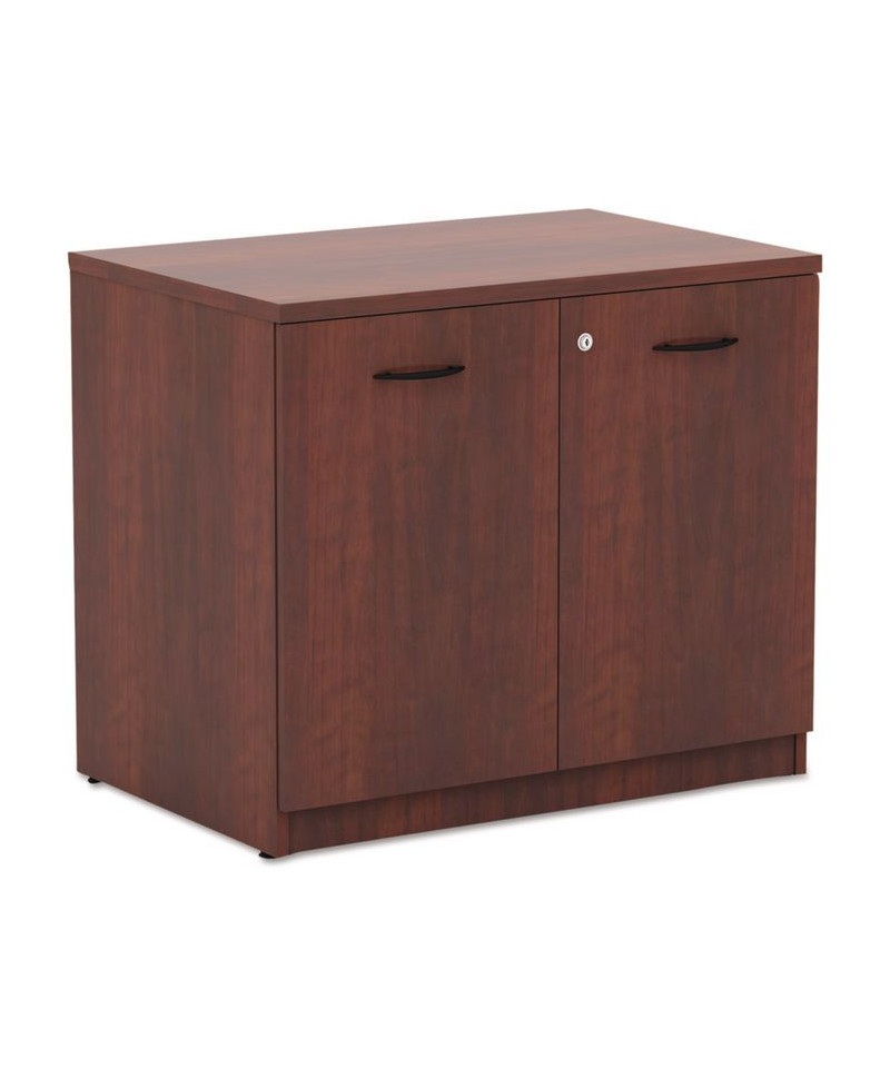 Useful storage cabinet with a top that is constructed to resist dents, scratches, and water. Built with a commercial grade works surface and side panels for added strength. The durable, 3mm edge banding prevents damage against bumps and dings. The top is removable so it can be installed under a work surface or used as a stand-alone piece. The smooth finish has a charcoal accent line under work surface. Includes two, fold-away safety keys which provide a smaller profile.