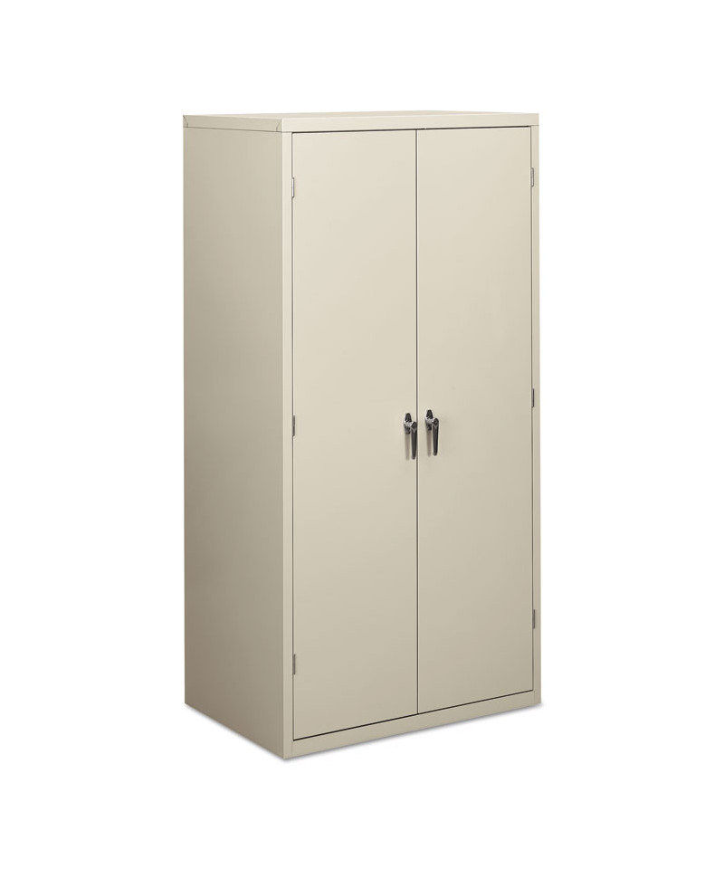 Industrial grade steel with one locking and one fixed, satin chrome double handles. HON "One Key" interchangeable lock core. Three-point locking system. Reinforced base with leveling glides. Tough construction provides extreme durability. Shelves adjust in 2" increments to accommodate different sized materials.