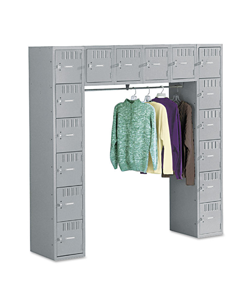 Sixteen Box Compartments and Coat Bar, 72w x 18d x 72h, Medium Gray