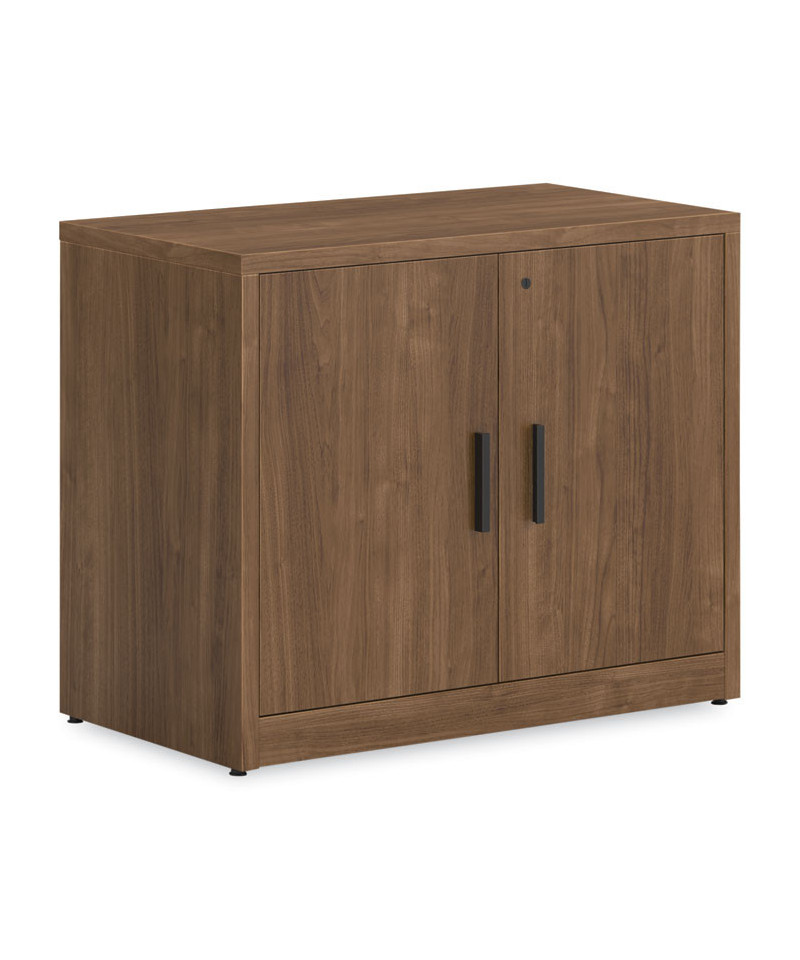 Hard-working, good-looking and built to survive a lifetime of overtime. Locking doors conceal shelves (all but the bottom shelf is height-adjustable). Strong inner frame construction ensures trouble-free performance and a long productive life. Premium, scratch-and stain-resistant, multi-ply laminate surfaces stand up to just about anything: dropped objects, spills, even boiling liquids. Straight, square edges deliver a streamlined look. Removable-core locking system minimizes security concerns while enabling keyed-alike convenience (keyed alike feature is limited to HON® 10500 Series™ components).