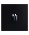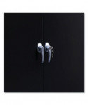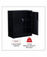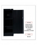 Assembled storage cabinet with three-point locking bar system locks top, bottom, and doors. Durable, reinforced doors with satin chrome double handles open 180° for easy access to contents. Industrial-grade steel with powder coat finish for long lasting use. The sturdy, 16-gauge door frame prevents racking. Heavy duty secure knuckle hinges for longevity. Built-in leveling glides help compensate for uneven floors.