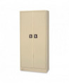 Self-closing hinged doors. One shelf on each side adjusts in 1 1/4" increments. Two sets of doors lock separately but are keyed alike. Cabinet and...
