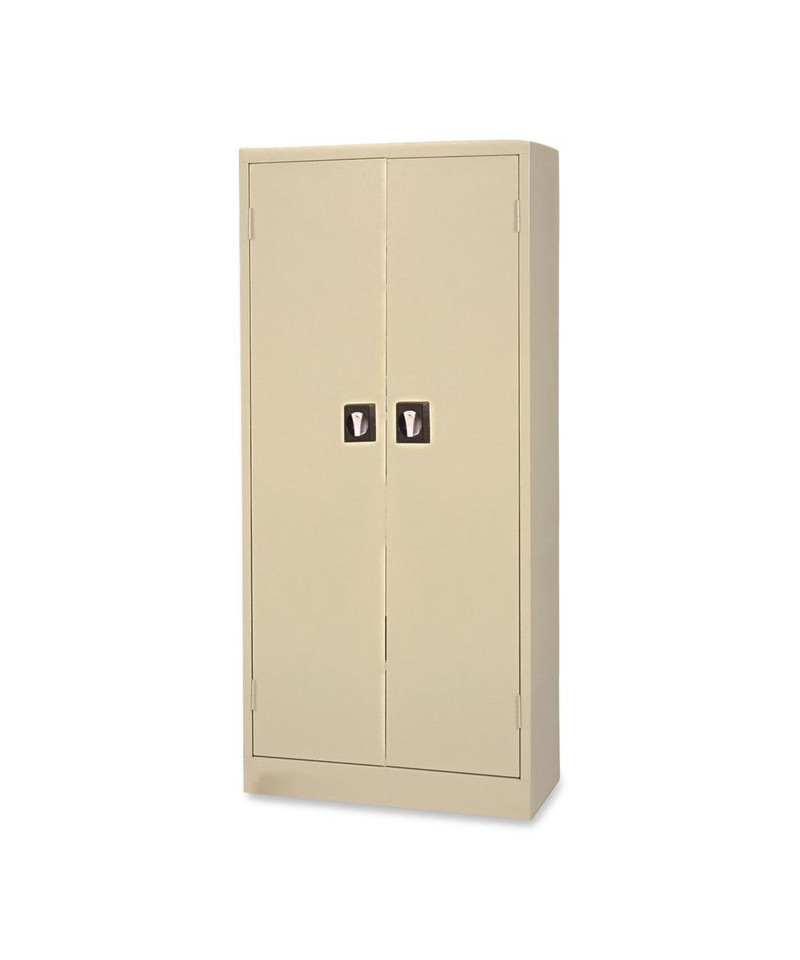 This heavy-duty, steel storage cabinet is fully assembled and ready for immediate use. Built with commercial grade steel and reinforced doors for long-term performance at an attractive price. Recessed handle provides easy access without handles obstructing narrow aisle ways. Five openings and 150 lb capacity per shelf. Storage cabinet is electrostatically painted with a tough, long lasting powder finish to ensure years of lasting beauty. Shelves adjust in 2" increments without tools. Raised base keeps contents out of harm's way from cleaning liquids.