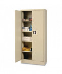 Alera Space-Saver Assembled Storage Cabinet is fully assembled and ready for immediate use. Built with commercial grade steel and reinforced doors for long-term performance at an attractive price. Recessed handle provides easy access without handles obstructing narrow aisle ways. Five openings and 150 lb capacity per shelf. Storage cabinet is electrostatically painted with a tough, long lasting powder finish to ensure years of lasting beauty. Shelves adjust in 2" increments without tools. Raised base keeps contents out of harm's way from cleaning liquids. Doors open 180° for easy access to contents. Four adjustable shelves.