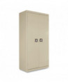 Standard assembled storage cabinet with three-point locking bar system locks top, bottom, and doors. Durable, reinforced doors with satin chrome...