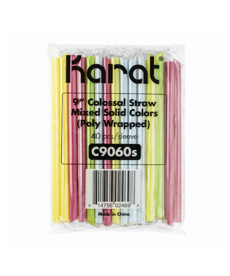 Boba Straws, 9", Plastic, Assorted Colors, 1,600/Carton