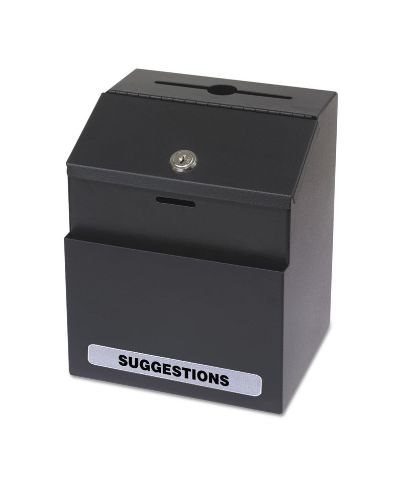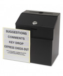 Keep important documents, suggestions and keys secure with this versatile locking drop box, designed to ensure confidentiality and organization in any setting. The durable construction and secure locking mechanism provide peace of mind, making it ideal for collecting suggestion cards, confidential notes, key returns or express checkouts in offices, hotels or retail spaces. Built-in pockets conveniently hold comment cards, pens and other small supplies, keeping everything neatly organized and easily accessible. To further customize its function, the box includes adhesive labels for "Suggestions," "Comments," "Key Drop" and "Express Check Out," allowing for effortless designation based on your needs. A 1-inch diameter key drop slot ensures smooth and easy deposits, making this box a perfect solution for secure collection and streamlined organization in any business, workplace, or community space. Enhance your security and efficiency—order yours today!
