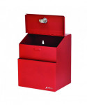 Wall Mountable Steel Suggestion Secure Drop Box with Key, 7 x 6 x 8.5, Stainless Steel 304, Red