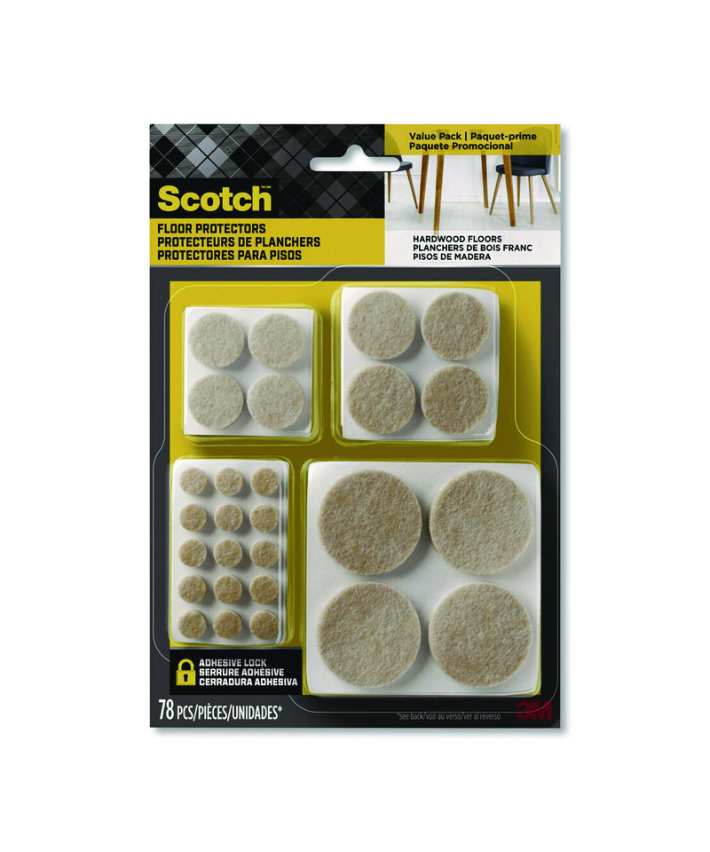 Preserve the beauty of your floors with Scotch Felt Pads. Equipped with powerful adhesive and durable felt, these floor protectors adhere effortlessly and provide long lasting protection from gouges and scratches. Ideal for use on furniture, lamps and décor that sits on finished surfaces.