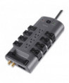 The ideal solution to protect all your sensitive electronic equipment. Pivoting outlet style easily accommodates multiple AC adapters. Superior circuitry and components deliver reliable, long-term performance. Detachable cord-management clip reduces clutter. LED indicators show power status at a glance.