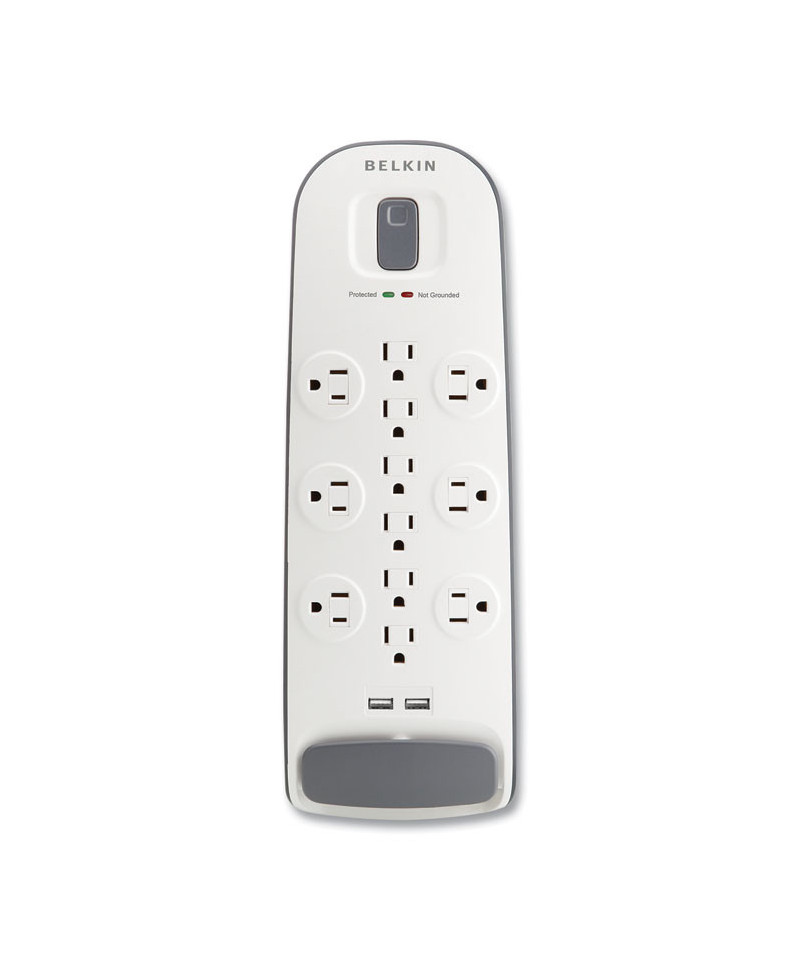 This surge protector is perfect for home office use. With six regular outlets and six Blockspace™ outlets, it can handle even oversized printer and charger plugs. The convenient USB ports allow you to charge your phone or MP3 player while working, surfing or checking email. This surge protector keeps equipment safe and advanced power filtration to help maintain data integrity and optimal system performance.