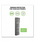 Protect your sensitive electronic devices from power surges and spikes. Surge suppressor features eight surge-protected outlets with sliding safety covers to provide premium power protection for your workstations, printers, broadband modems, home theater systems, and everyday household electronics. Slender, sleek design with a right angle plug and a detachable cord-management clip helps keep cables organized.