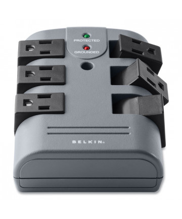 Isobar Surge Protector, 6 AC Outlets/2 USB Ports, 8 ft Cord, 3,150 J, Black