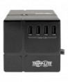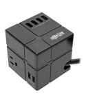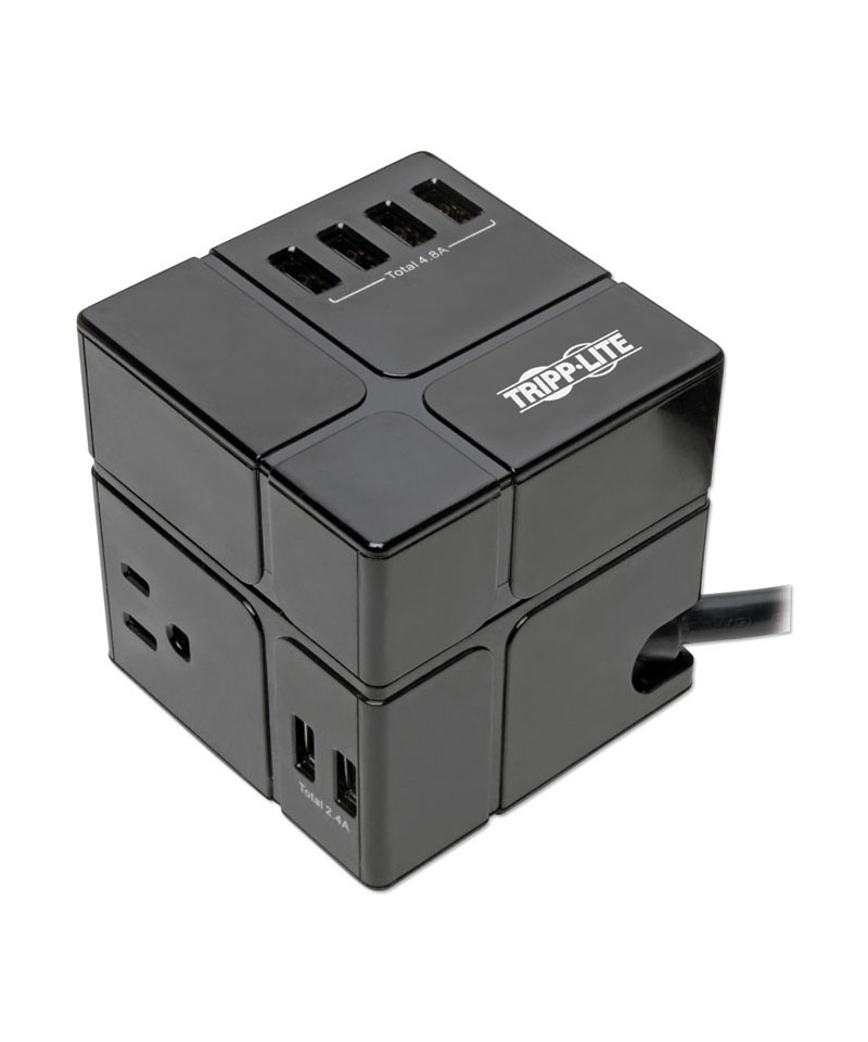 Ideal for your home or office workstation, this three-outlet power cube features a surge protection rating of 540 joules to defend your sensitive electronic components against strong power surges and spikes. Because residential power outlets have three wires—hot line (H), neutral (N) and ground (G)—the cube protects all three, covering the two protection modes: full normal mode (H-N) and common mode (N-G/H-G). Perfectly sized to fit inconspicuously into your workspace or take with you to the office, dorm, hotel or conference room. Three NEMA 5-15R outlets distribute AC power to connected home/office equipment. Six USB-A ports provide charging power for phones, tablets and other mobile devices. Six-foot pivoting cord with right-angle NEMA 5-15P plug allows flexibility in placing the cube. Green LED reassures you at a glance that your connected electronics are protected.