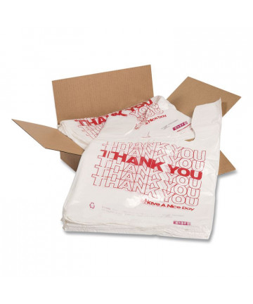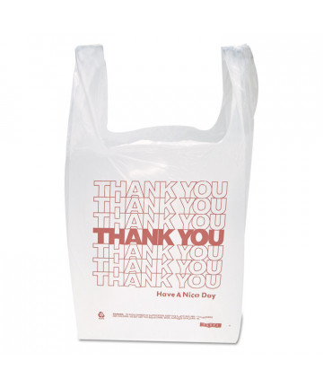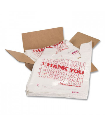 Preprinted "Thank You" shopping bags help you show appreciation while boosting your image. Strong, high-density plastic resists tearing and...