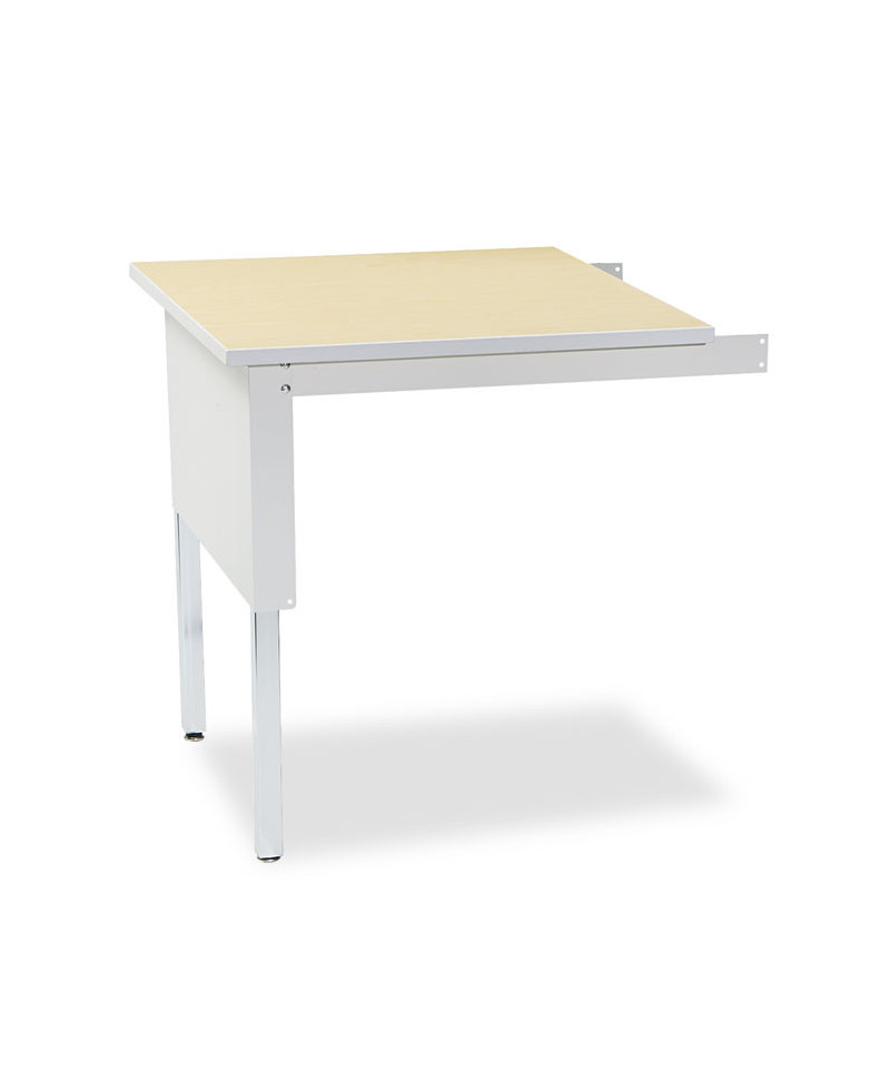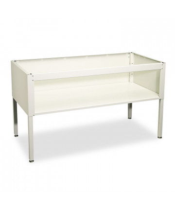 Custom millwork can't compare to this mailroom table. Adjustable to meet your individual needs. Heavy-duty construction ensures exceptional stability. Large shelf provides ample storage space (sold separately). Mail Center Design Service is available. Call your rep. for more information.