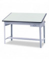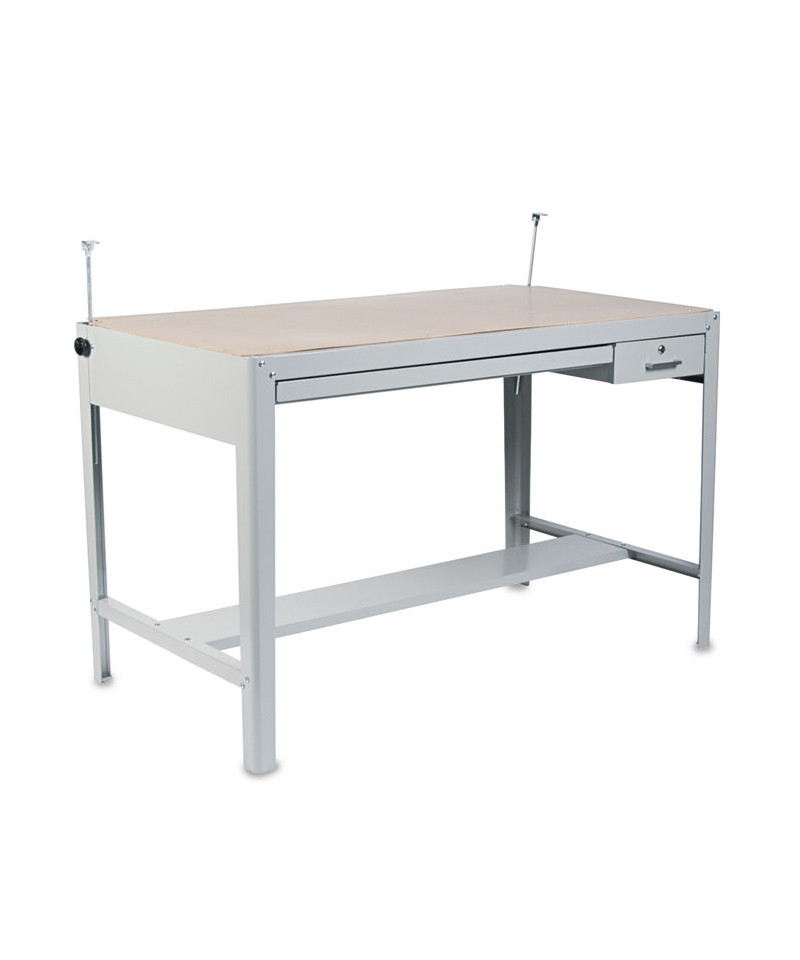 Work in comfort with this height-adjustable drafting table. Industrial-grade steel with a baked enamel finish. Angle of board adjusts up to 50° without tools. Includes 12 1/2"w x 29 3/4"d locking tool drawer and 38 1/4"w x 28 3/4"d reference drawer. Stabilizing bar for added support. Top and Base sold and shipped separately—ORDER BOTH.