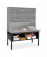 Perfect for all of your mailroom needs, this heavy-gauge steel base supports up to 500 lbs on extra-thick 1.5" legs. Height-adjustable from 28" to 36" for standing or seated comfort. 150 lb capacity bottom storage shelf with 14" clearance. Leveling glides help compensate for uneven floors. Top and Base sold and shipped separately—ORDER BOTH.