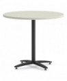 The round work surface brings everyone closer to their work. Scratch-, spill- and stain-resistant laminate stands up to heavy use. Easily attach a base using pre-drilled holes. Thick work surface provides a sturdy foundation for work. Durable edge-band provides a smooth, comfortable edge.